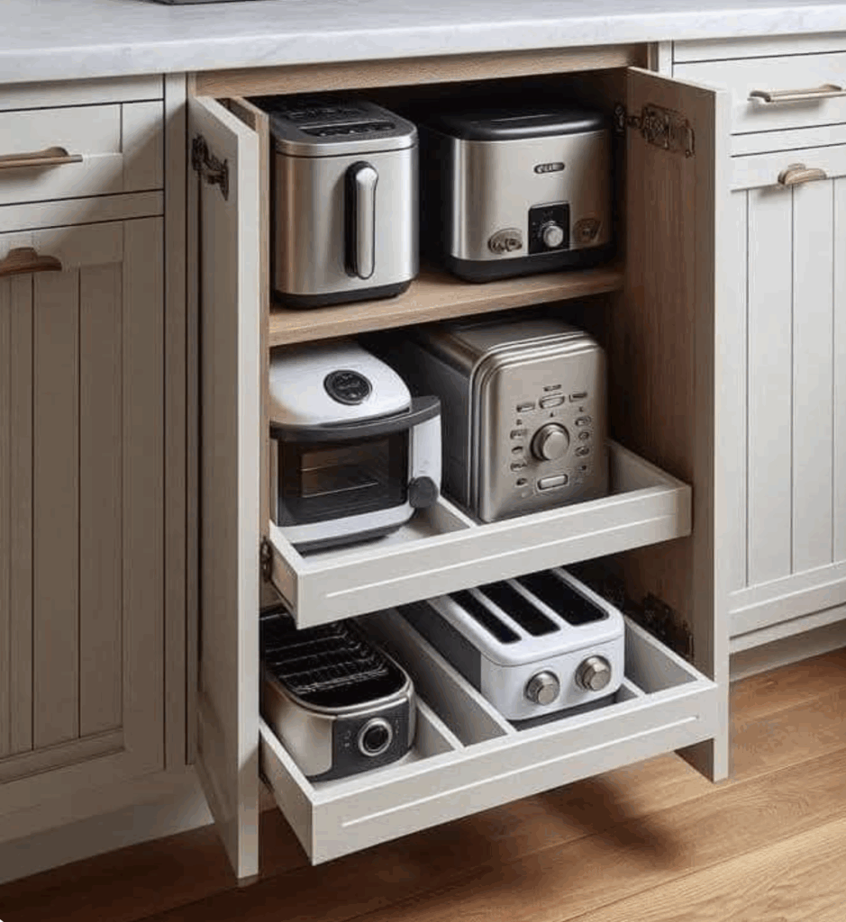 If you’re not planning a full kitchen renovation, you still have great options. Many existing cabinets can be retrofitted with pull-out sliders or tray systems behind the doors. These allow you to slide out your pots, pans, and dishes just like a drawer, giving you much of the same convenience without replacing your cabinetry. It’s an easy, budget-friendly upgrade that can make a big difference in the way your kitchen functions day to day.