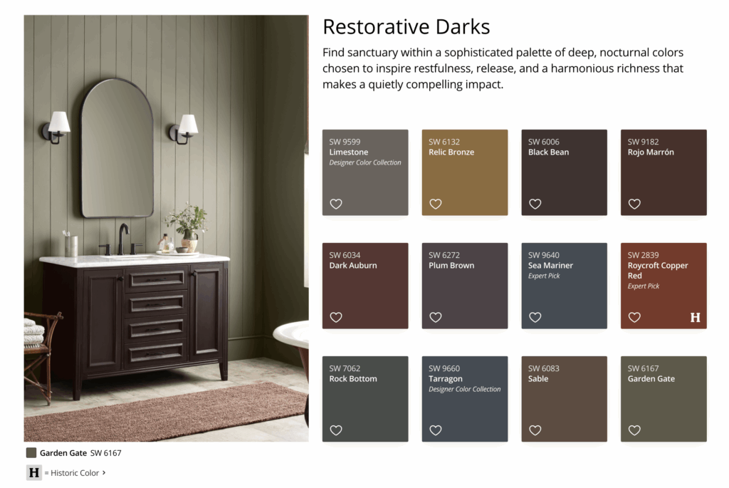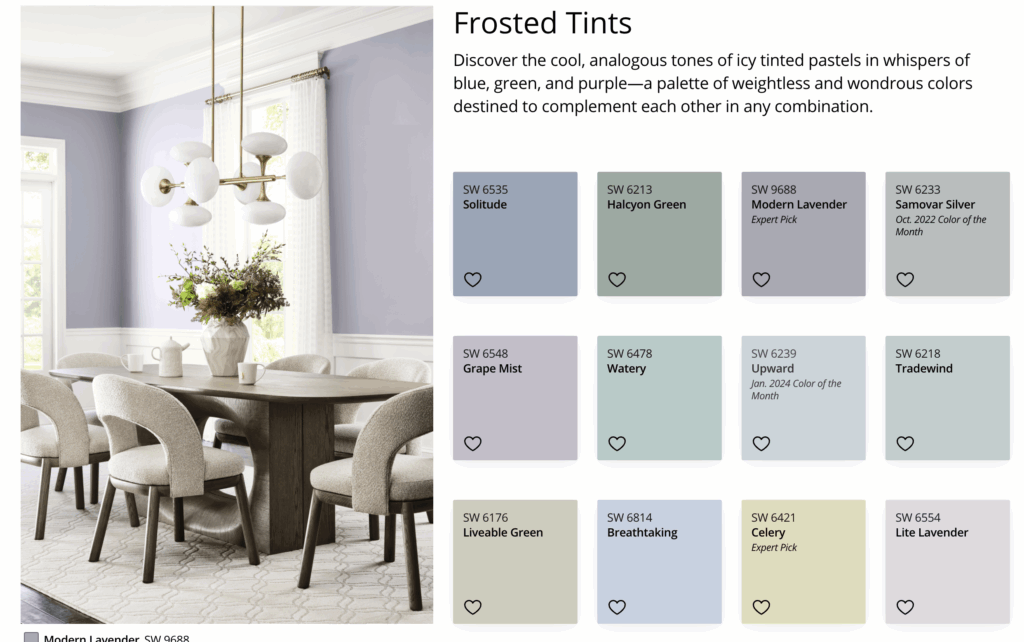 In addition to Universal Khaki, Sherwin Williams highlighted their 2026 Color Mix Forecast, which provide a full spectrum of inspiration for interiors: