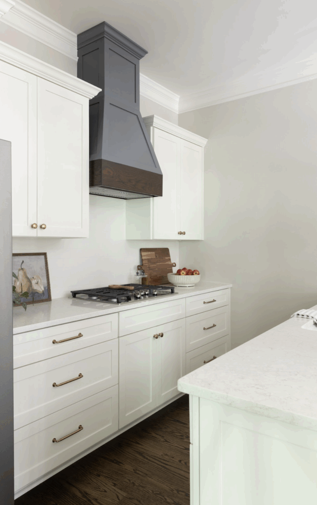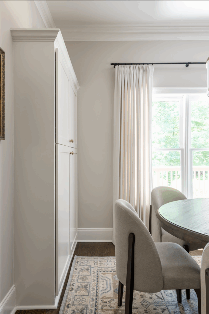 One of our favorite moments in the space is the existing bookcase in the new dining area. Instead of removing it, we added doors and simple hardware to transform it into a functional and beautiful built-in. It now holds family photos, serving pieces, and art supplies for the grandchildren — the kind of thoughtful detail that makes the space feel personal and loved.